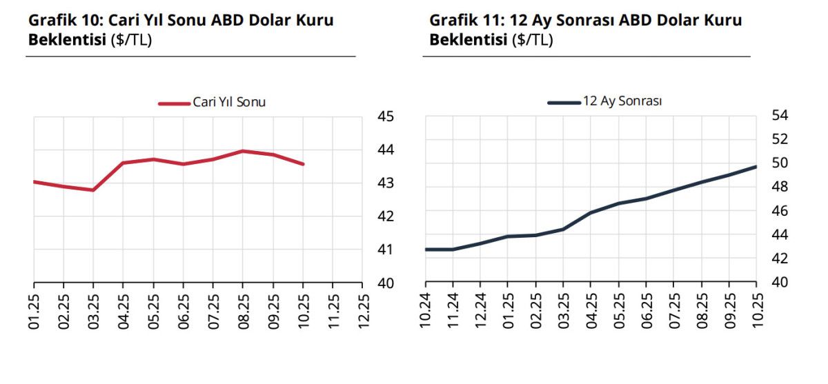 Katılımcıların cari yıl sonu döviz kuru (ABD Doları/TL) beklentisi bir önceki anket döneminde 43,85 TL iken, bu anket döneminde 43,56 TL oldu.