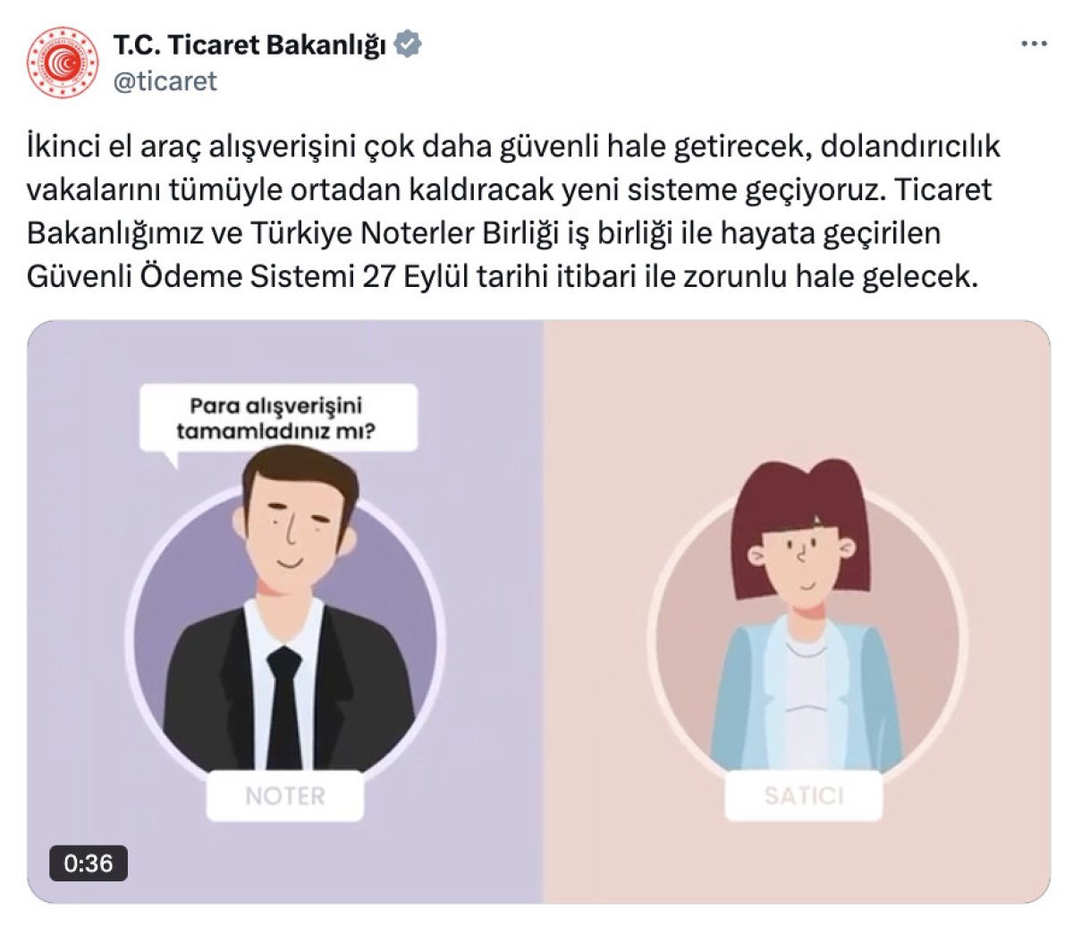 Ticaret Bakanlığımız ve Türkiye Noterler Birliği iş birliği ile hayata geçirilen Güvenli Ödeme Sistemi 27 Eylül tarihi itibari ile zorunlu hale gelecek.