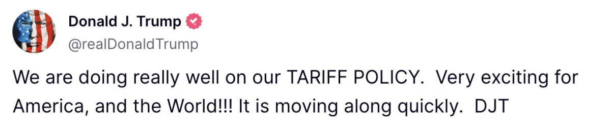 ABD Başkanı Trump, Truth Social hesabından bir açıklama yaparak tarife politikasında iyi gittiklerini belirterek, bu konuda hızla ilerlediklerini bildirdi.