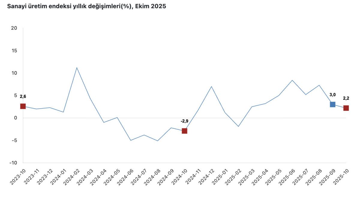 Türkiye İstatistik Kurumu (TÜİK), Türkiye’nin ekim ayı sanayi üretimi verisini aktardı.