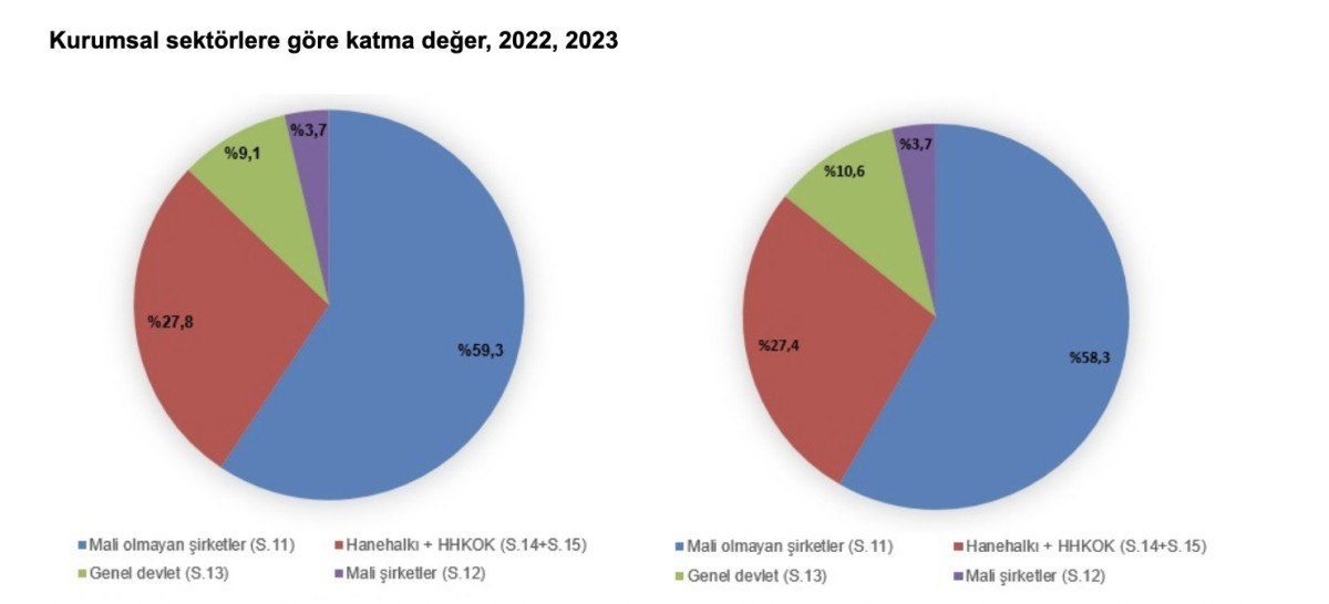 Türkiye’nin gayrisafi milli hasılası (GSMH) 2023 yılında 26 trilyon 278 milyar 895 milyon 983 bin lirayı bulurken, mali olmayan şirketler, toplam ekonomide yaratılan katma değer içinde yüzde 58,3’lük paya sahip oldu.