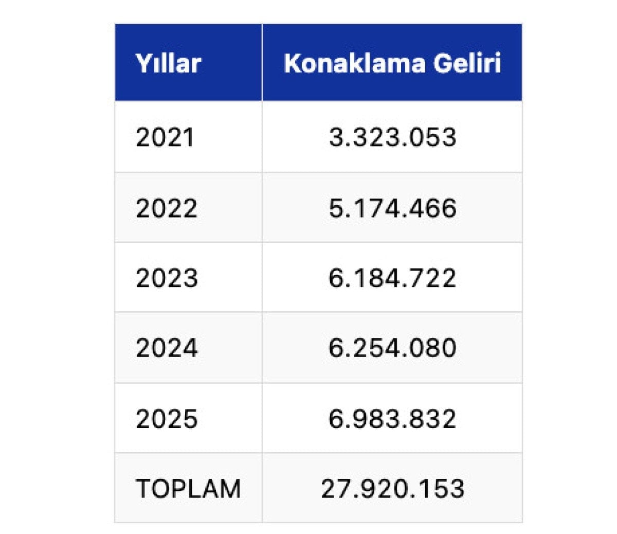 Koronavirüs salgınının yaşandığı 2021’de 3,3 milyar dolar olarak kayıtlara geçen konaklama gelirleri ilerleyen yıllarda hızla artarak 2023’te 6 milyar doları aşmıştı.