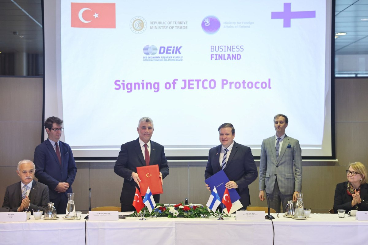Bolat, iki ülkenin resmi ihracat kredi kuruluşları Türk Eximbank ile Finnvera arasında imzalanan Reasürans İşbirliği Anlaşması’yla ekonomik ve ticari ortaklığın bir adım öteye taşınacağını vurgulayarak, “Anlaşmayla şirketlerimiz daha fazla finansman aracından yararlanma imkanı bulacak, üçüncü ülkelerdeki potansiyel projelerimizde de daha kolay finansmana ulaşabilecekler. Türkiye olarak, Finlandiya ile iş dünyalarımız arasında iş birliğinin derinleştirilmesine ve yeni ortaklıkların kurulmasına yönelik desteğimiz tamdır. Bu kapsamda imzaladığımız JETCO Protokolü’nün ve toplantımızın ülkelerimiz için hayırlara vesile olmasını diliyorum.” değerlendirmesinde bulundu.