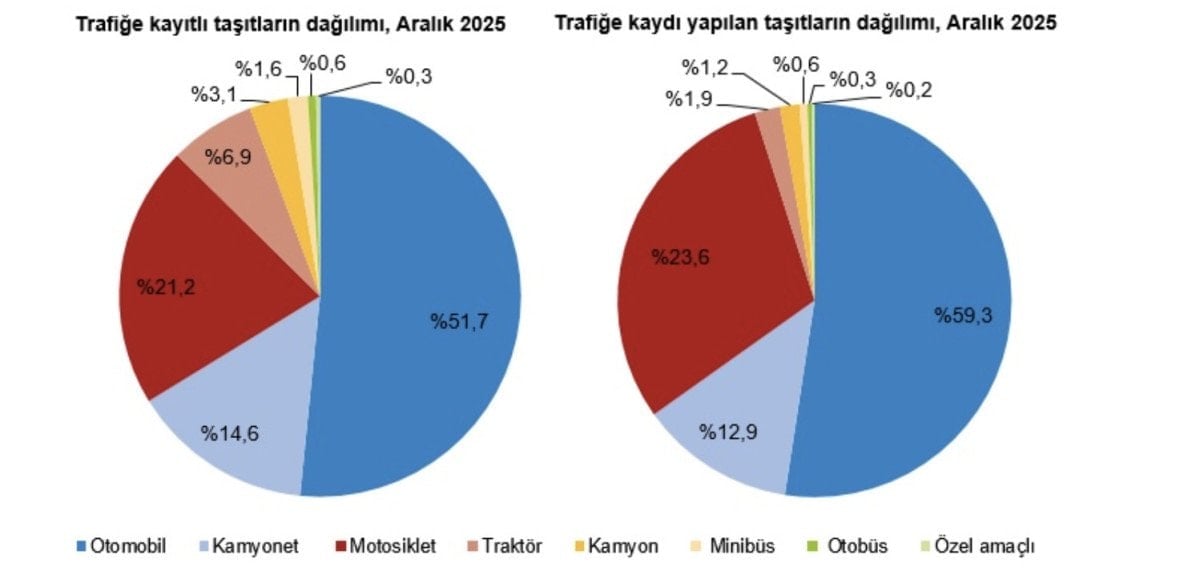 Türkiye İstatistik Kurumu (TÜİK) tarafından Aralık 2025 dönemine ait Motorlu Kara Taşıtları verileri yayımlandı.