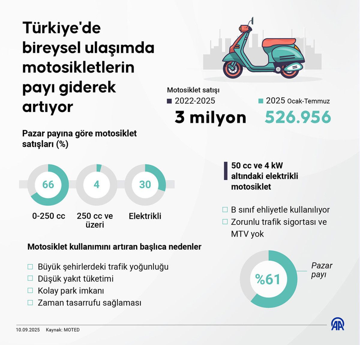 2022-2025 yılları arasında 3 milyon motosiklet satıldı. 2025 ocak-temmuz ayları arasında ise 526 bin 956 motosiklet satışı gerçekleşti.