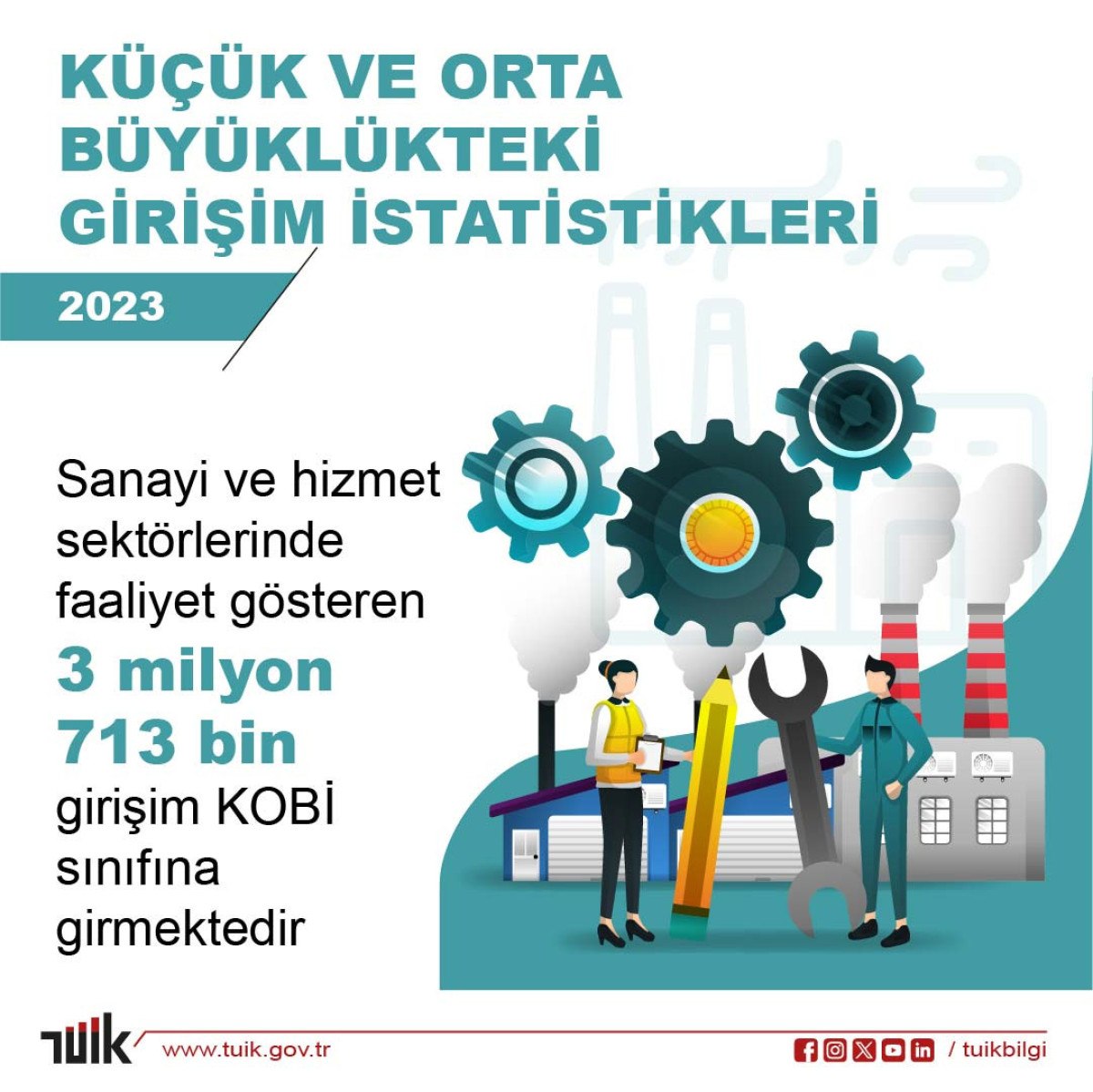 Türkiye İstatistik Kurumu (TÜİK), 2023 yılına ilişkin küçük ve orta büyüklükteki girişim istatistiklerini duyurdu.