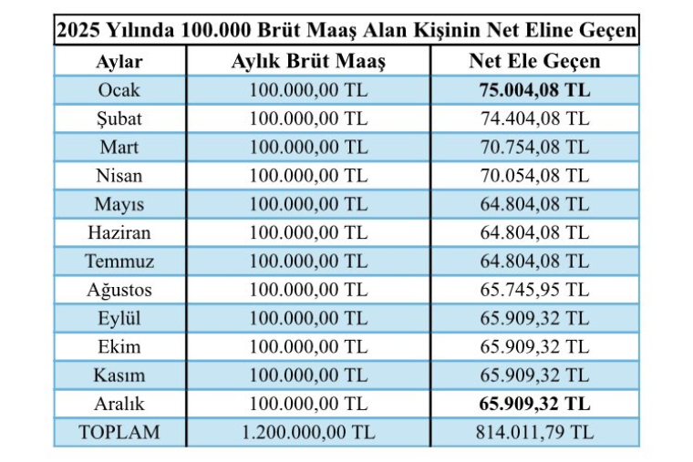 Yılın ikinci ayı itibarıyla 93.000 lira ve üzeri brüt maaşı olan bordrolular %20’lik vergi dilimine geçmiş olacaklar. Örneğin 100.000 lira brüt maaşı olan bir çalışanın yılın ilk ayında eline net 75.004 lira geçerken, yılın son ayında eline net 65.909 lira geçmiş olacak. Yıllık… pic.twitter.com/tRGwmzXJRg