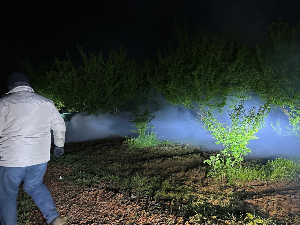 Olası zararı en aza indirmek için sabaha kadar tarlalarında nöbet tutan çiftçiler, ateş yakarak ve traktörlerle sis bulutu oluşturarak, kalan ürünlerini korumaya çalışıyor.