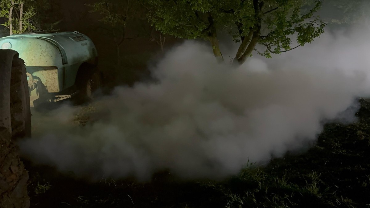 BURSA’DA ÇİFTÇİLER, ZİRAİ DONA KARŞI TRAKTÖRLERLE SİS BULUTU OLUŞTURUP SABAHA KADAR NÖBET TUTUYOR