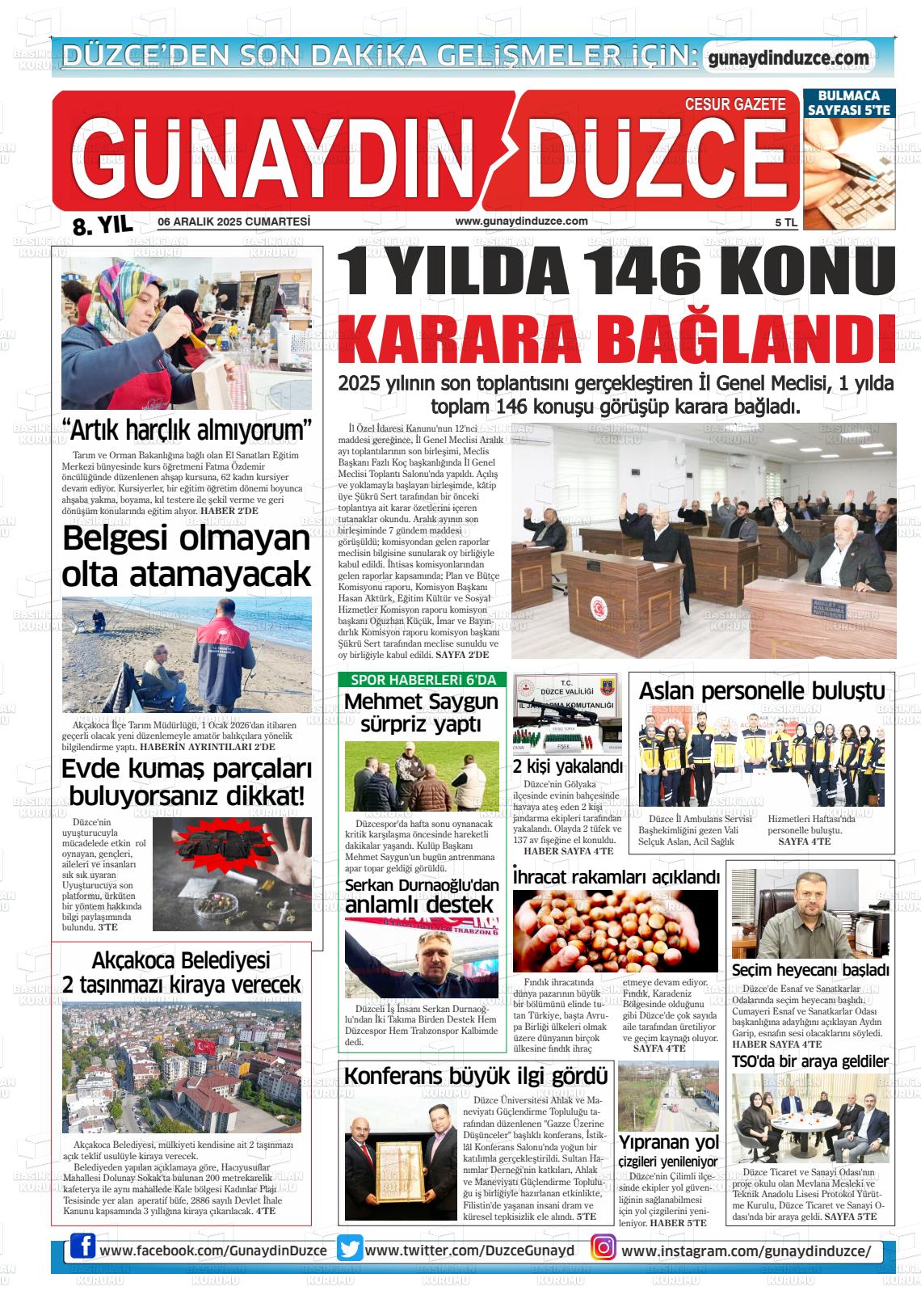 Düzce Yerel Gazeteleri 04 Şubat 2026, Çarşamba Günü Manşeti