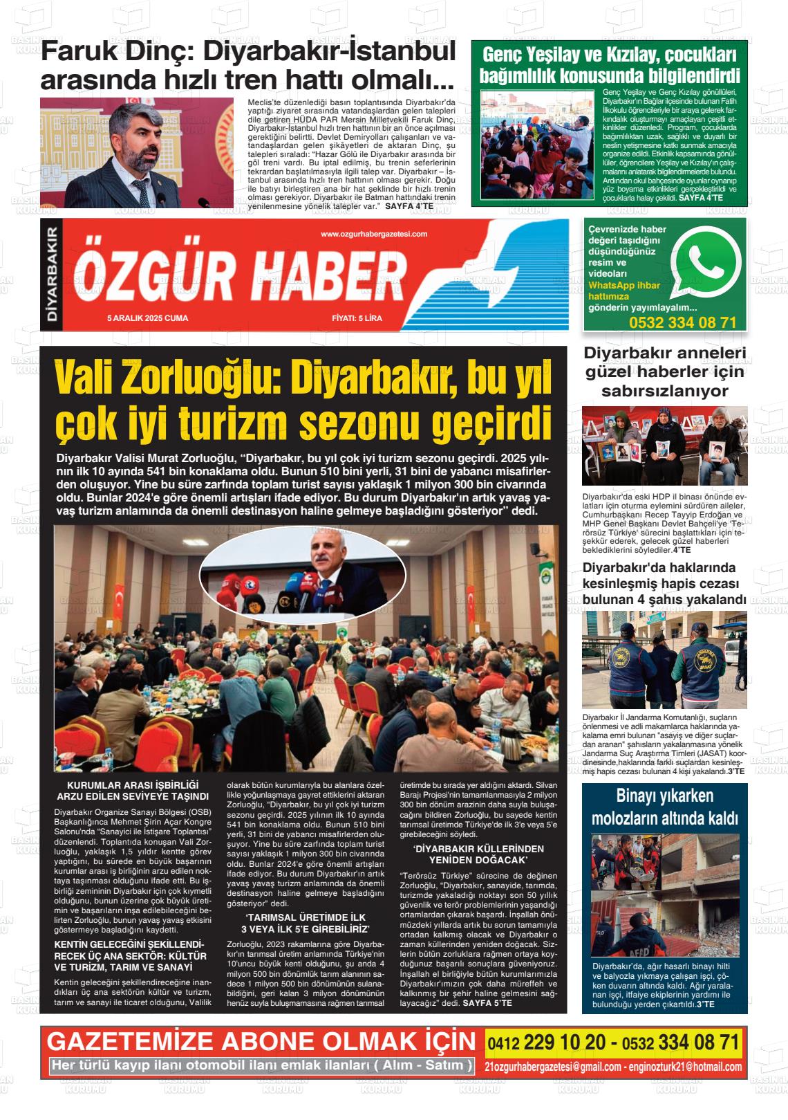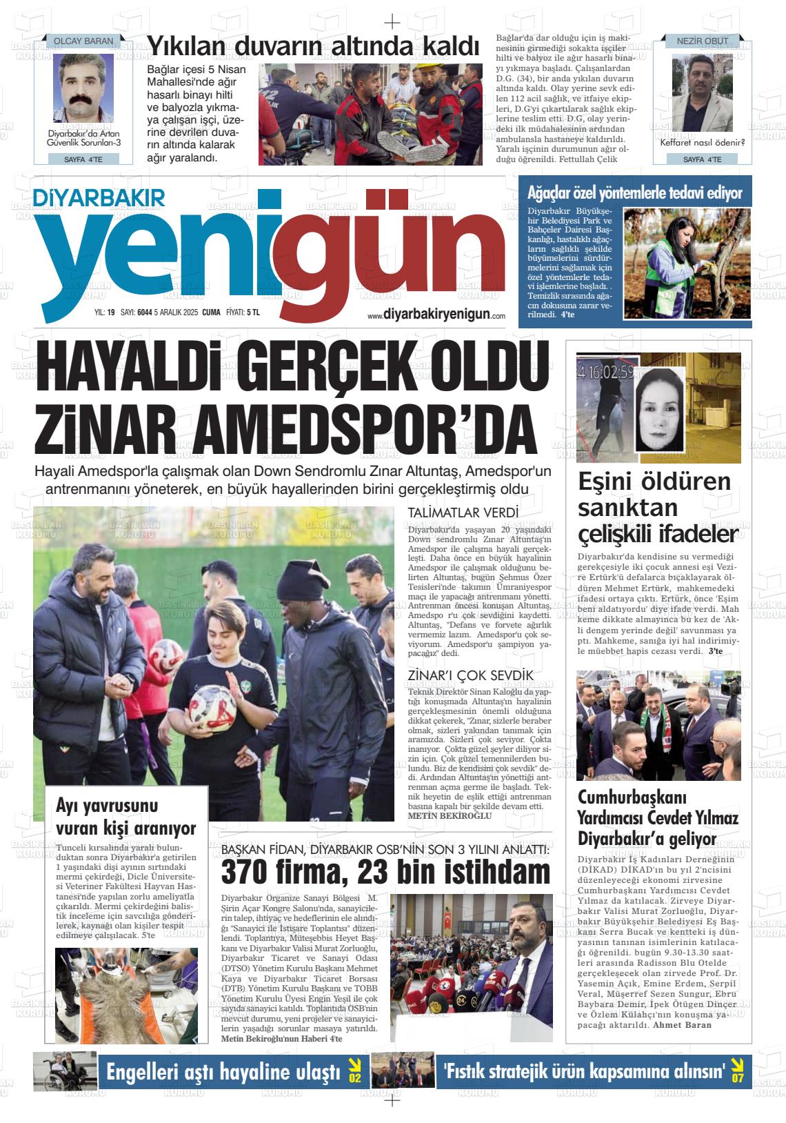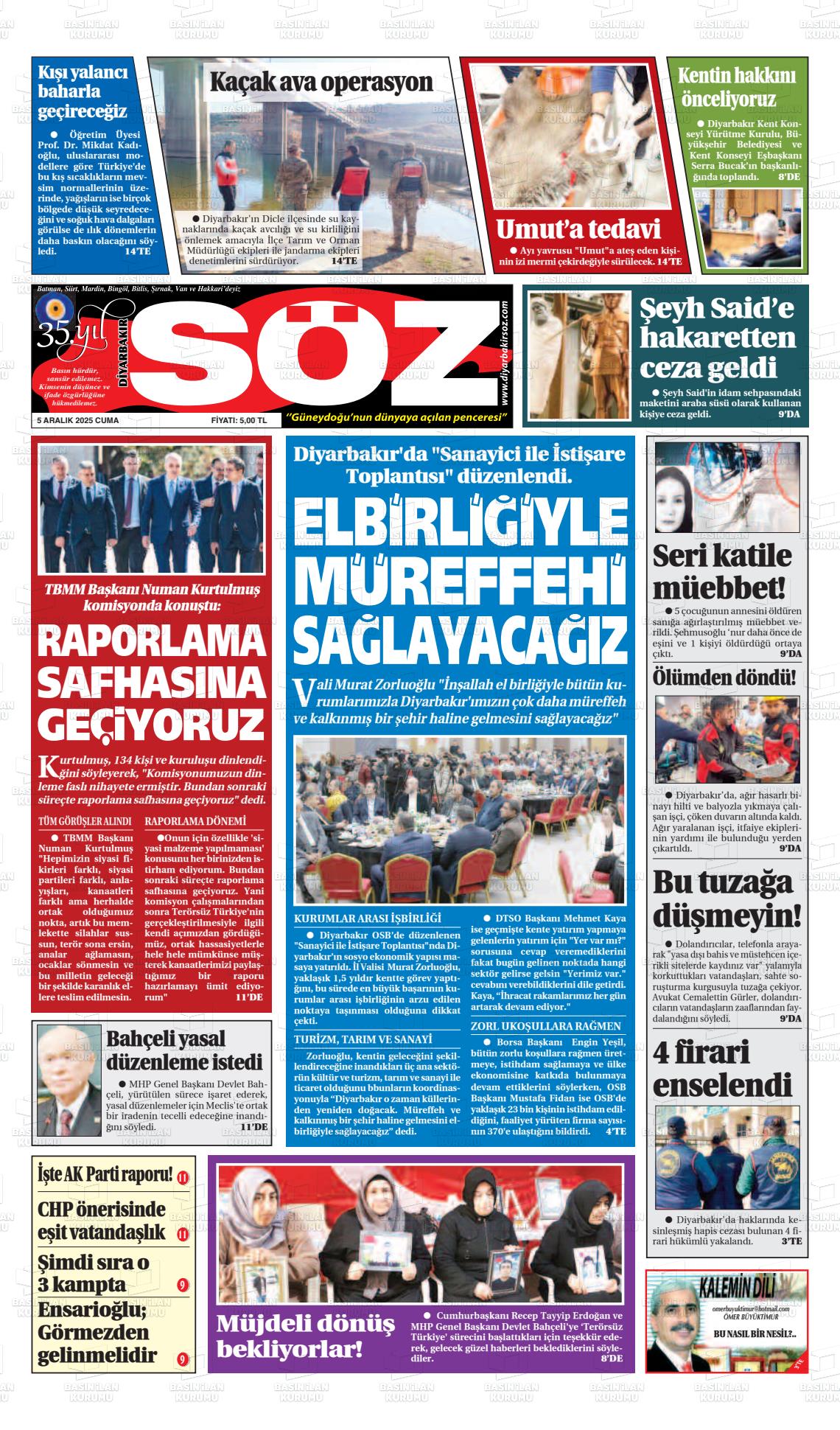 Dİyarbakır Yerel Gazeteleri 02 Şubat 2026, Pazartesi Günü Manşeti
