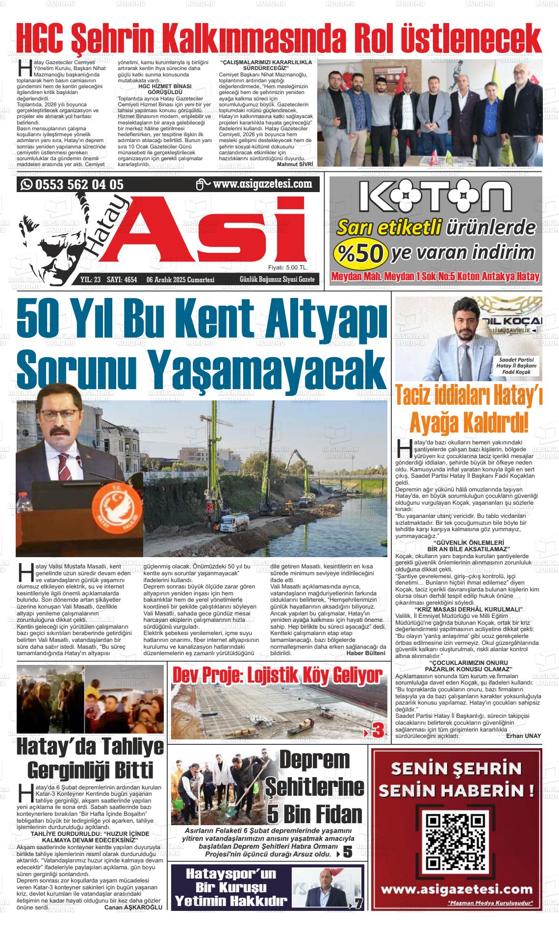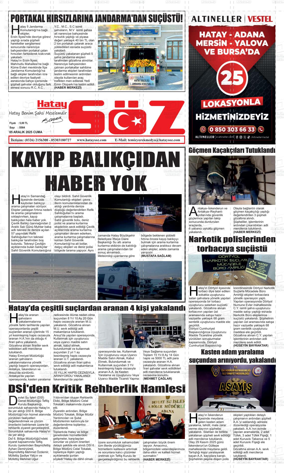 Hatay Yerel Gazeteleri 03 Şubat 2026, Salı Günü Manşeti