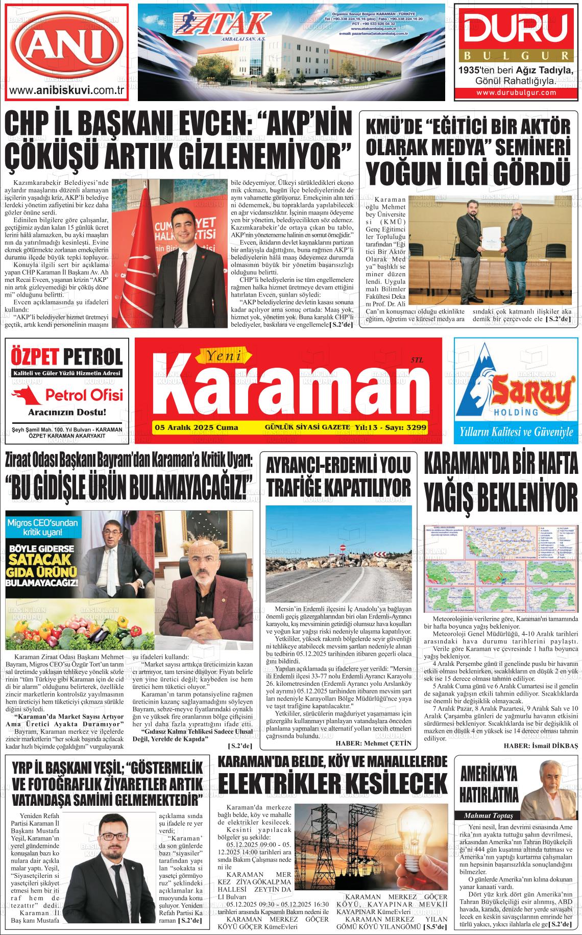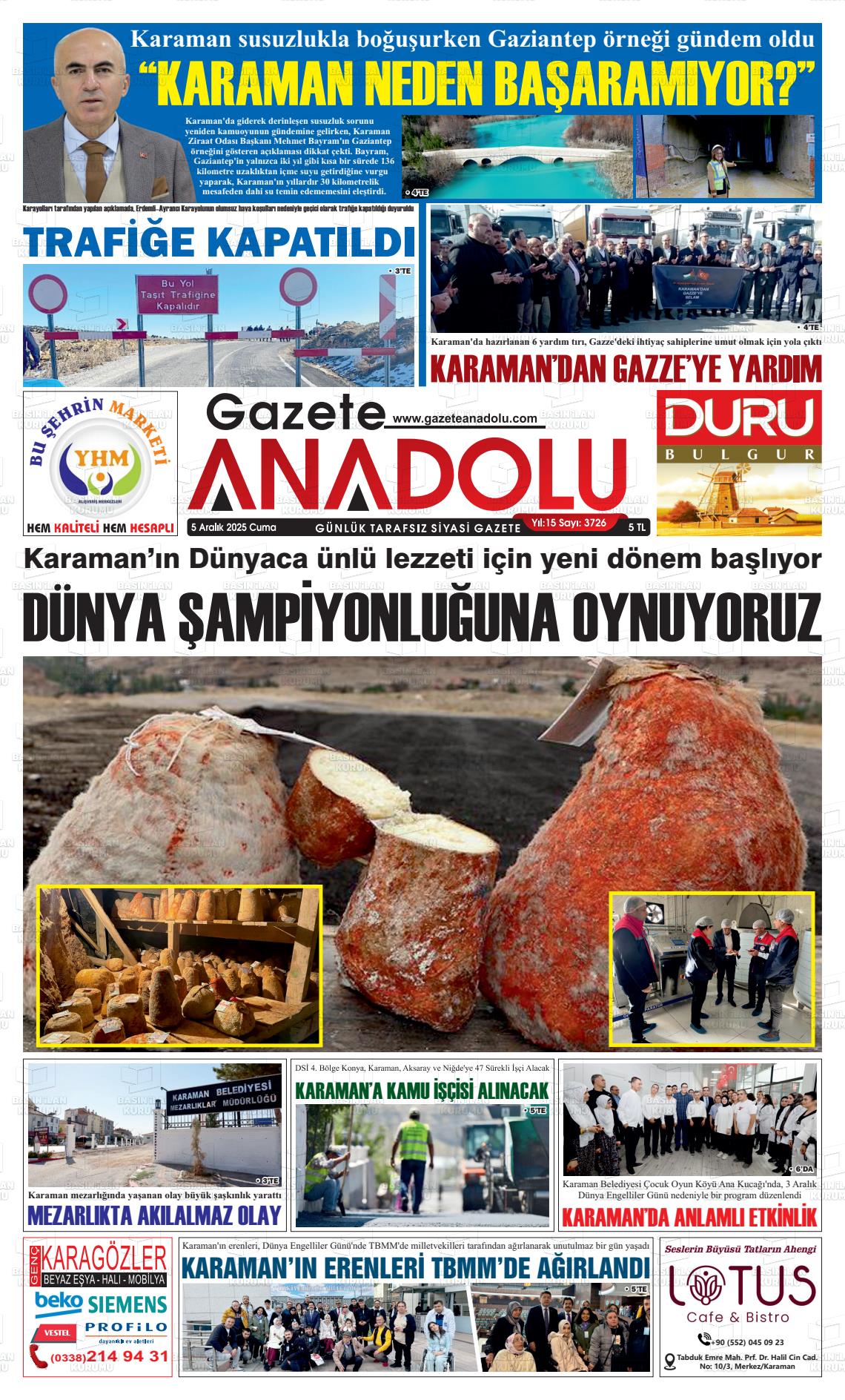 Karaman Yerel Gazeteleri 04 Şubat 2026, Çarşamba Günü Manşeti