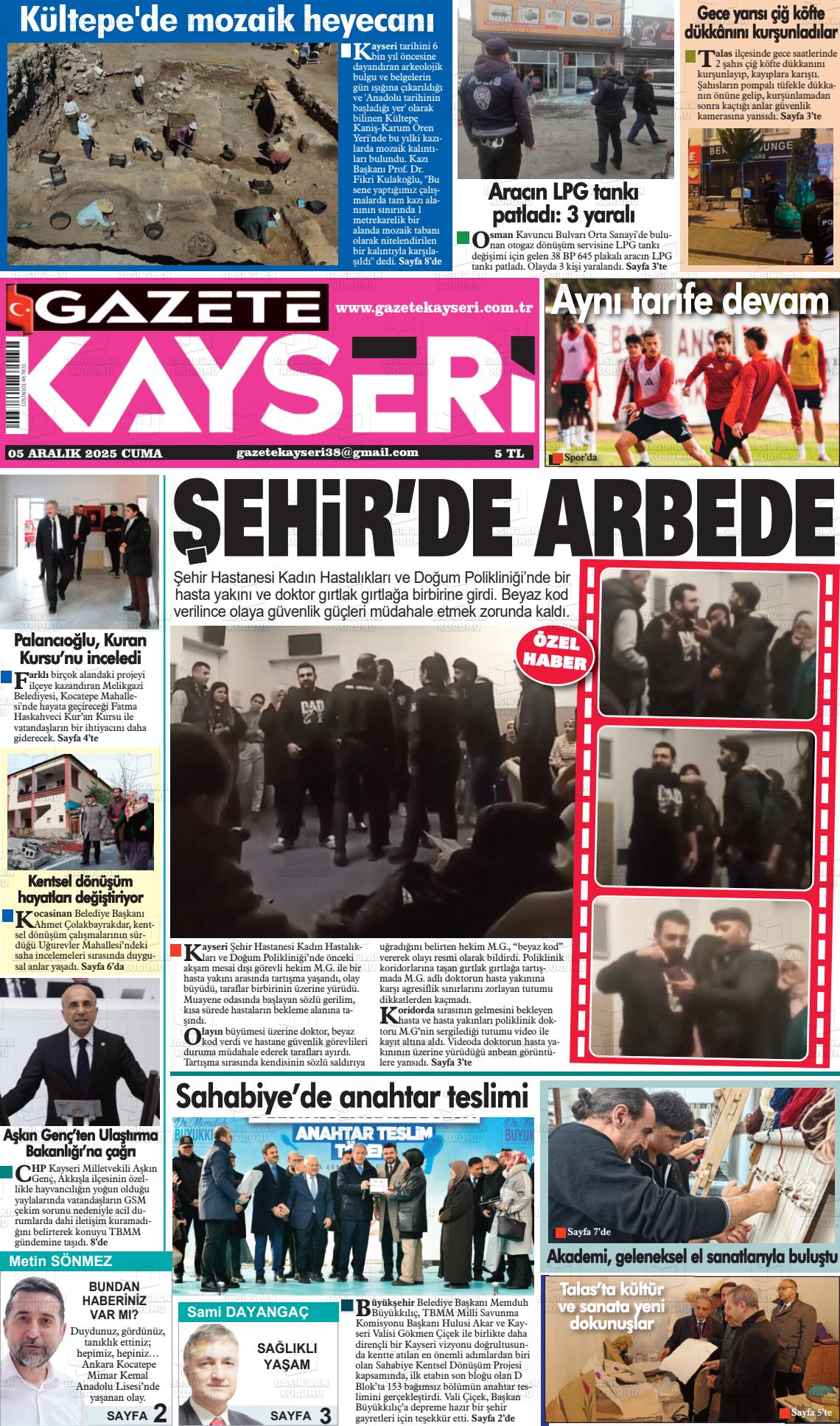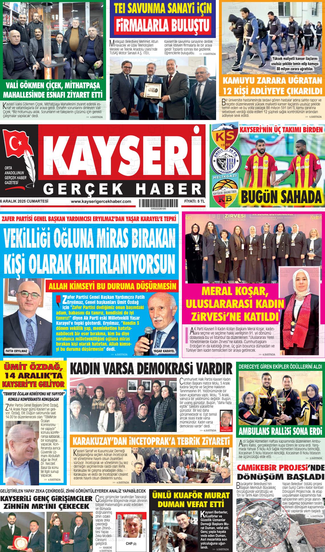 Kayserİ Yerel Gazeteleri 04 Şubat 2026, Çarşamba Günü Manşeti