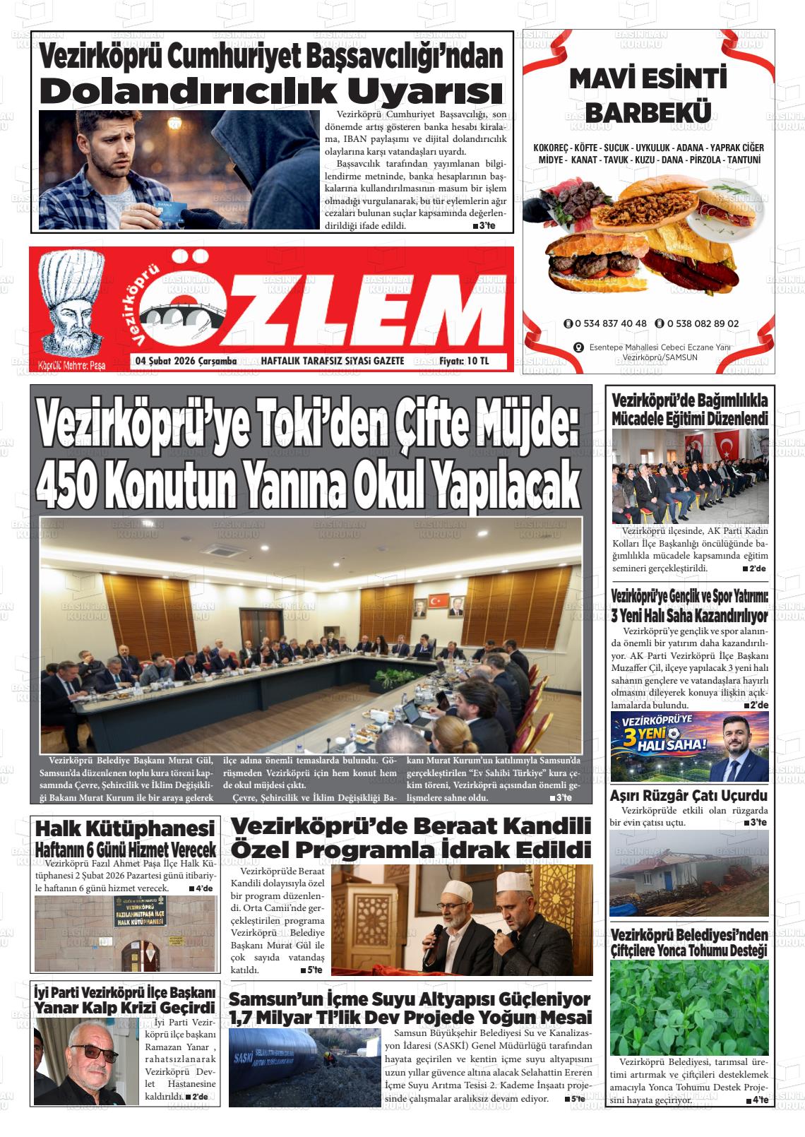 Samsun Yerel Gazeteleri 04 Şubat 2026, Çarşamba Günü Manşeti