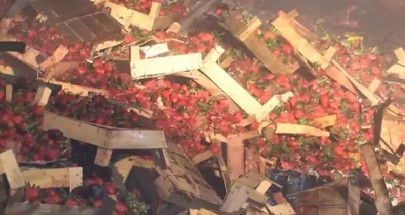 Yaklaşık 1 milyon TL değerinde olduğu tahmin edilen 6 ton çilek, ahşap kasalarının tutuşmasıyla yola saçıldı. Yangın nedeniyle otoyolda araç yoğunluğu oluşurken, trafik bir süre tek şeritten kontrollü olarak sağlandı.
