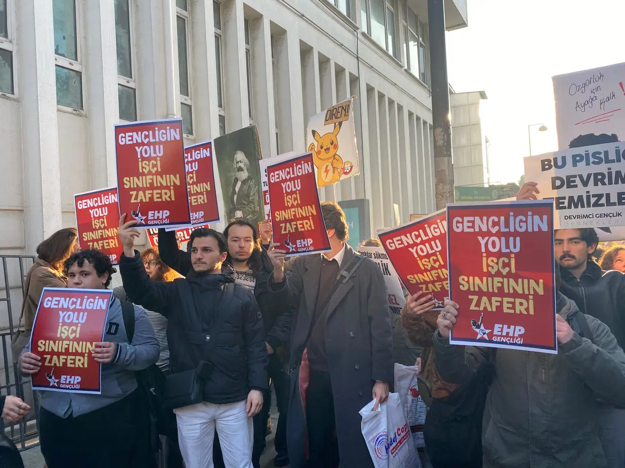 İstanbul Üniversitesi Esnaf Yemekhanesi önünde toplanan öğrenciler, Beyazıt Ana Kapı’ya yürüyüş düzenleyeceklerini açıkladı. Gençler, 19 Mart sürecine dikkat çekerek mücadelenin sürdüğünü vurguladı.