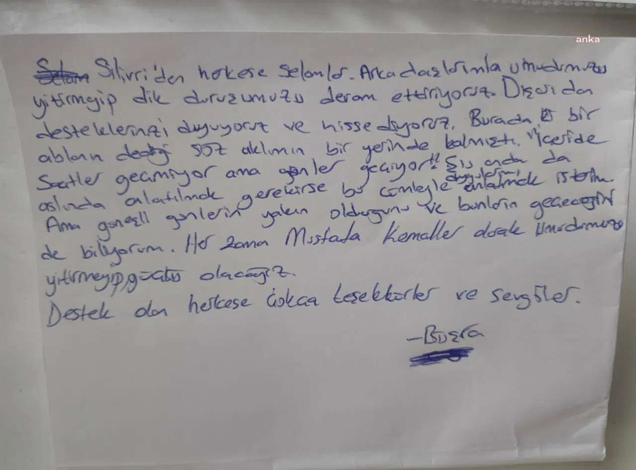 Tutuklu gençlerden öğrenci olan 19 yaşındaki Büşra ise bulunduğu Silivri’deki Marmara Kapalı Ceza İnfaz Kurumundan mektup gönderdi.