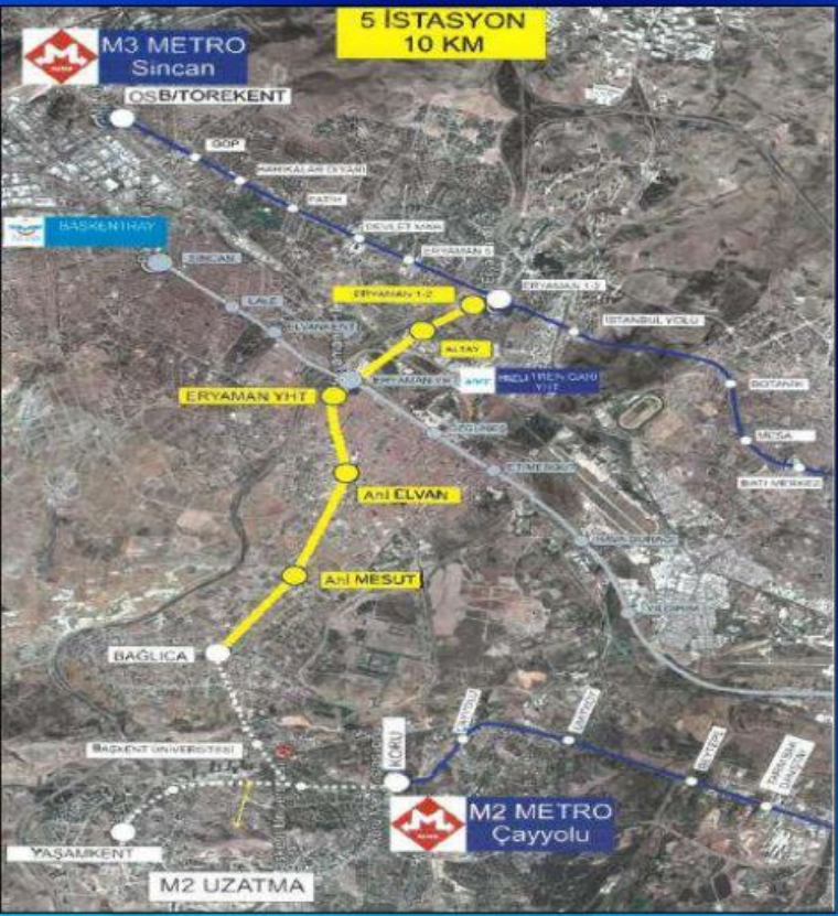 Raporda, M5 Kızılay-Dikmen Raylı Sistem Hattı Ana Plan ve İhale Güzergah Çalışmaları’na ilişkin de bilgi verildi. 15,5 kilometrelik uzunluğa sahip olması planlanan hattın 11 istasyondan oluşması bekleniyor. Hatta, “Esat, Kuğulu Park, Dikmen Vadisi, Çetin Emeç, Öveçler, Dikmen, Malazgirt, Keklik Pınarı, Akpınar, Atatürk Sitesi, Oran Sitesi, TRT ve İlkbahar Mahallesi” durakları yer alacak. Kesin proje onayı için Ulaştırma ve Altyapı Bakanlığı tarafından istenen tüm revizyonların yapıldığı kaydedilirken onayın gelmesinin ardından 2025 ek yatırım programına teklif edileceği ifade edildi. GM-6 (M2 Çayyolu-M3 Sincan) Bağlantı Hattı Proje Çalışmaları Güzergah Çalışmaları başlığı altında ise, projenin yaklaşık 10 kilometre uzunluğunda olup 5 istasyona sahip olduğu belirtildi. Koru- Bağlıca hattının son istasyonu olan Bağlıca’dan kuzey yönüne doğru devam eden hat, Eryaman Başkentray ile entegre olduktan sonra kuzeyde M3 metro hattının Eryaman 1-2 istasyonuna bağlanarak sonlanacak. İstasyonların isimleri ise, “Ahi Mesut, Alsancak, Ahi Evran, Eryaman YHT, Şapka Devrimi” olarak kaydedildi. Projenin fizibilite etüt raporunun 3 Mart’ta onaylandığı da ifade edildi.