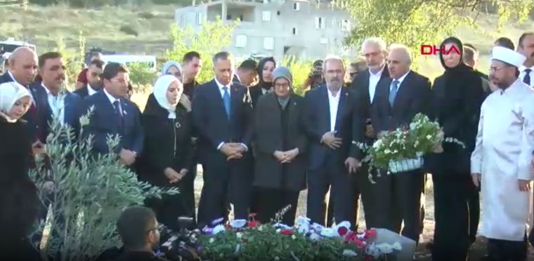 Narin Güran’ın kabrini ziyaret eden Bakanlar dua etti, mezara çiçek bıraktı.