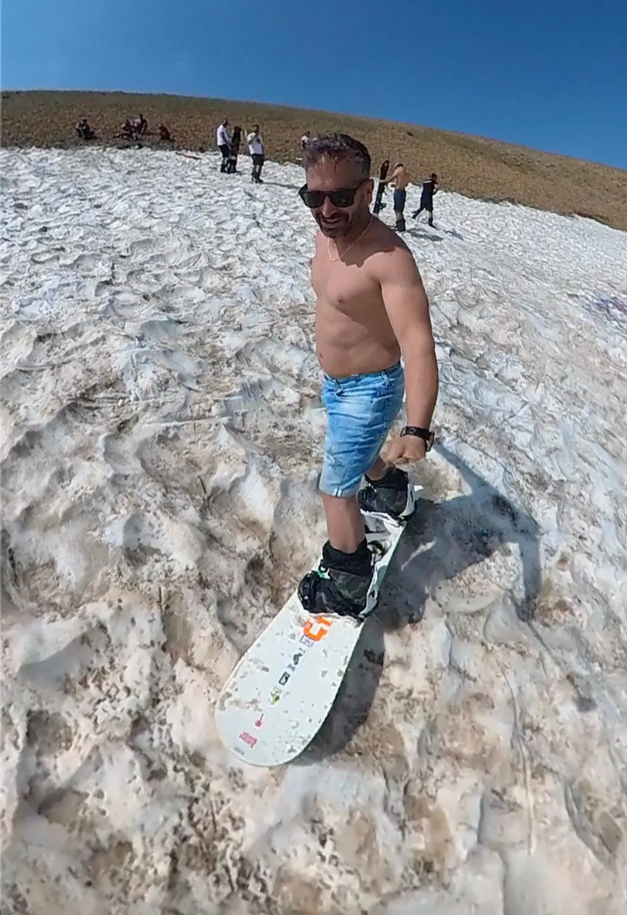 Erzincan kent merkezinde hava sıcaklığının 40 dereceye yaklaştığını ifade eden Canser Atila ise “40 dereceye ulaşan sıcaklık olunca, biz de ağustos ayında şortlarımız, kros motorlarımızla Ergan Dağı’nın zirvesine çıkarak 12 ay boyunca erimeyen karın üzerinde çok güzel, keyifli zaman geçirdik. Burada diğer snowboardcı ve kayakçı arkadaşlarımızla birlikte kendimize ufak bir rampa yapıp karın ve soğuk havanın keyfini çıkardık. Herkesi Erzincan’a bekliyoruz” diye konuştu.