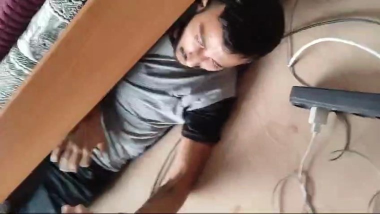 Ekipler, odadaki ranzanın alt kısmının önünde rulo halinde duran halıyı fark etti. Halı çekildiğinde ranzanın altına saklanan şüpheli bulundu. Şüphelinin yakalanma anı cep telefonu kamerasıyla kaydedildi.