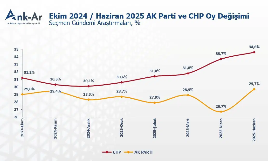 EKİM 2024-HAZİRAN 2025 AKP VE CHP OY DEĞİŞİMİ