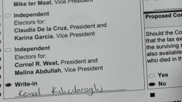 Virginia eyaletinde bir seçmenin, oy pusulasına eski CHP Genel Başkanı Kemal Kılıçdaroğlu‘nun adını yazdığı görüldü.