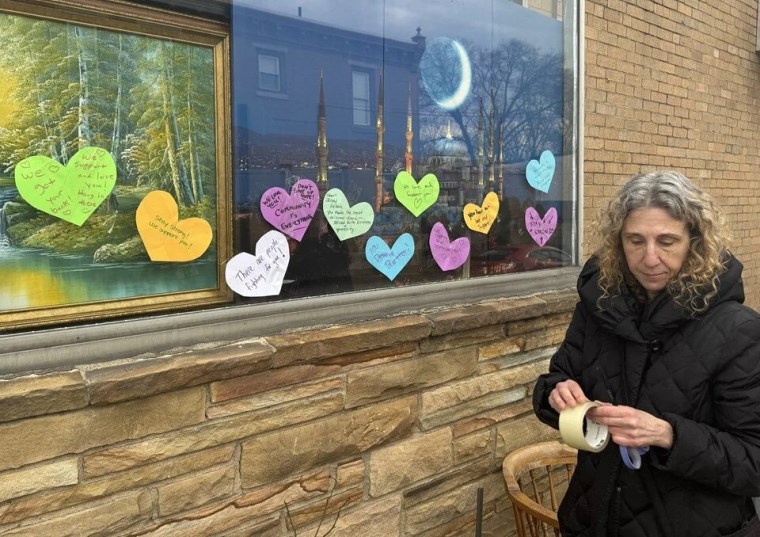 Trump yönetiminin katı göçmenlik politikasını eleştiren komşular, lokantanın camına “Sizinleyiz” ve “Yalnız değilsiniz” gibi destek mesajları yazdı.