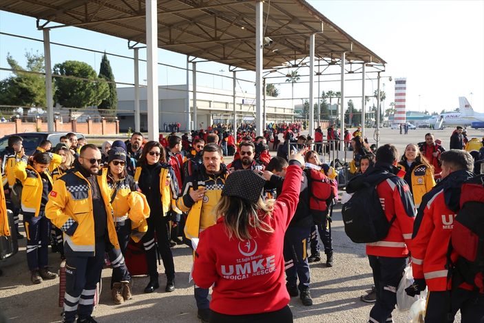 Buraya gelen ekipler, AFAD koordinasyonuyla minibüs ve otobüslerle ihtiyaç duyulan bölgelere sevk ediliyor.