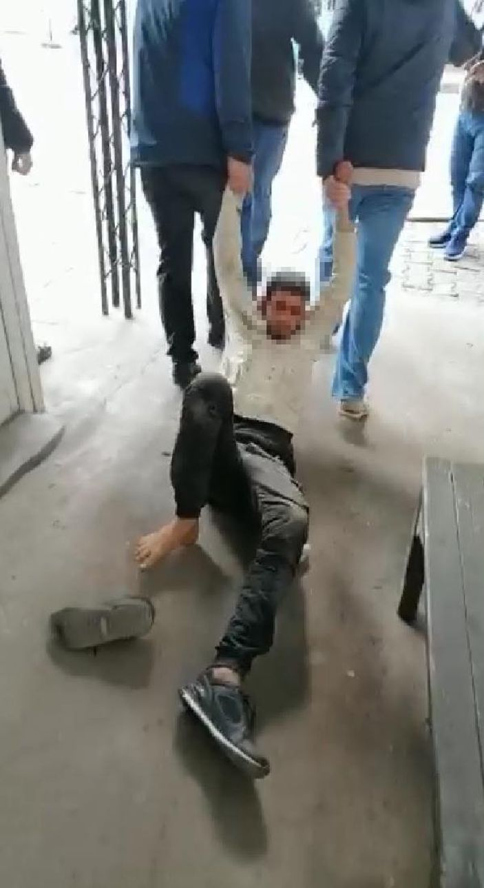 O anlar, cep telefonu ile görüntülendi. İhbar sonrası dövülen kişi, polis takımlarına teslim edildi. Kabahat kaydı olmadığı belirlenen kişi, sorgu için polis merkezine götürüldü.