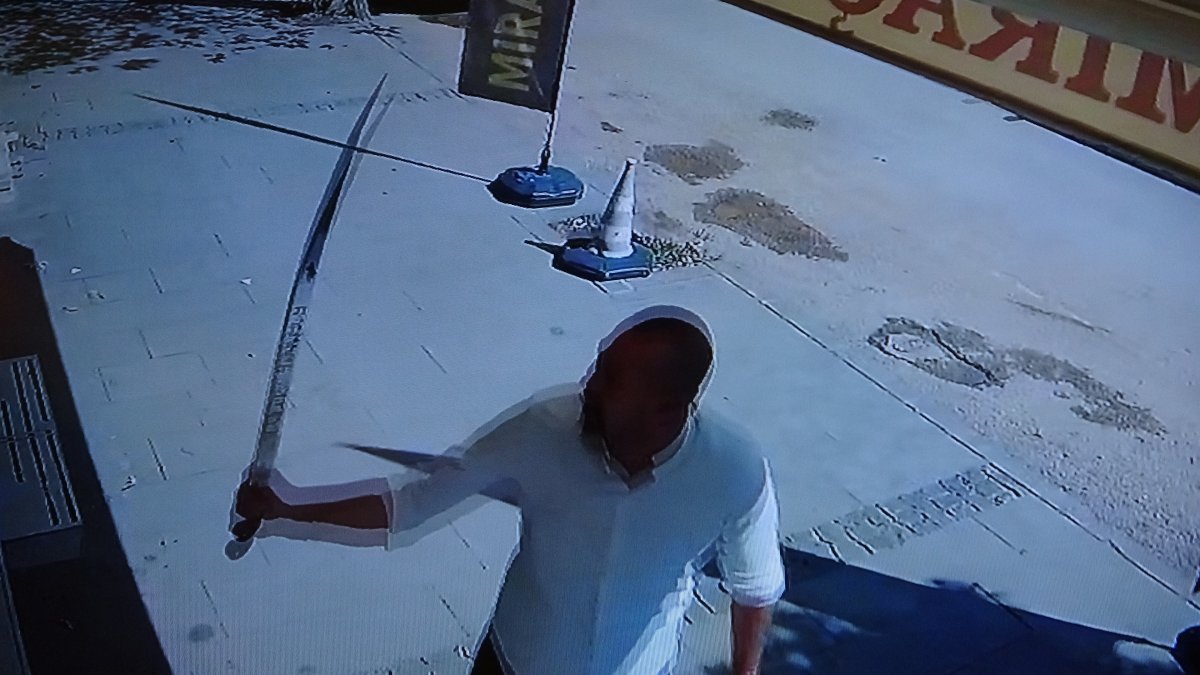 Tartışmanın ardından M.D. ve A.D., D.E.’nin kapısına kılıçla dayandı. Saldırganlardan biri D.E.’yi kolundan tutup tokatladıktan sonra kılıçla yaraladı