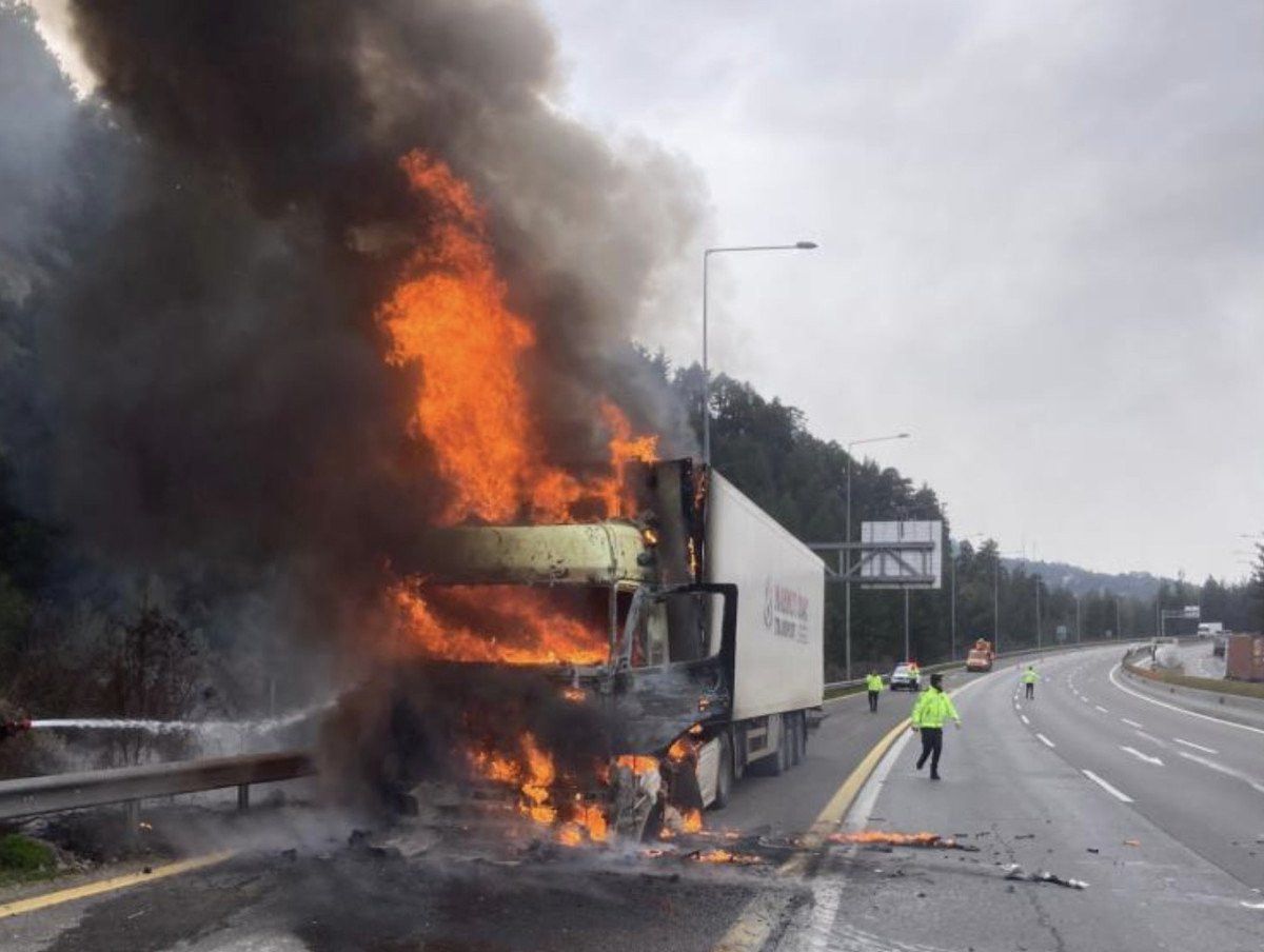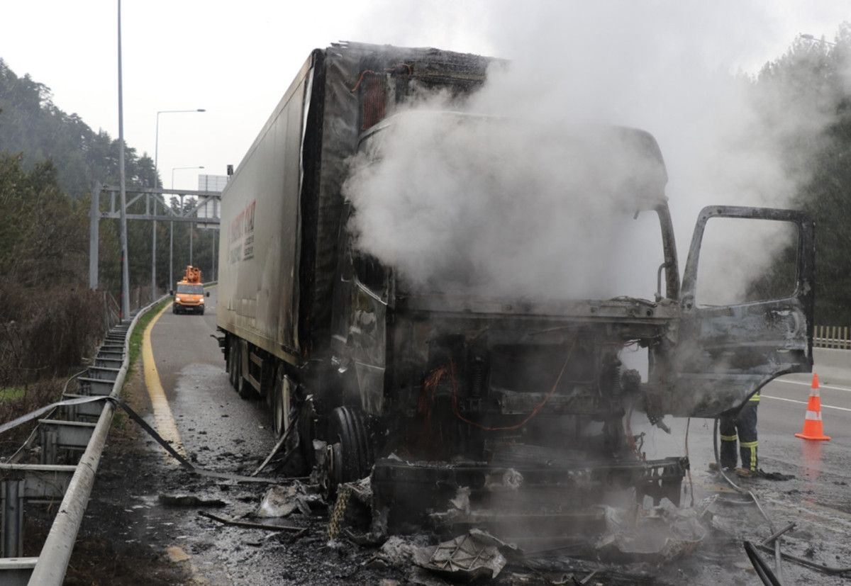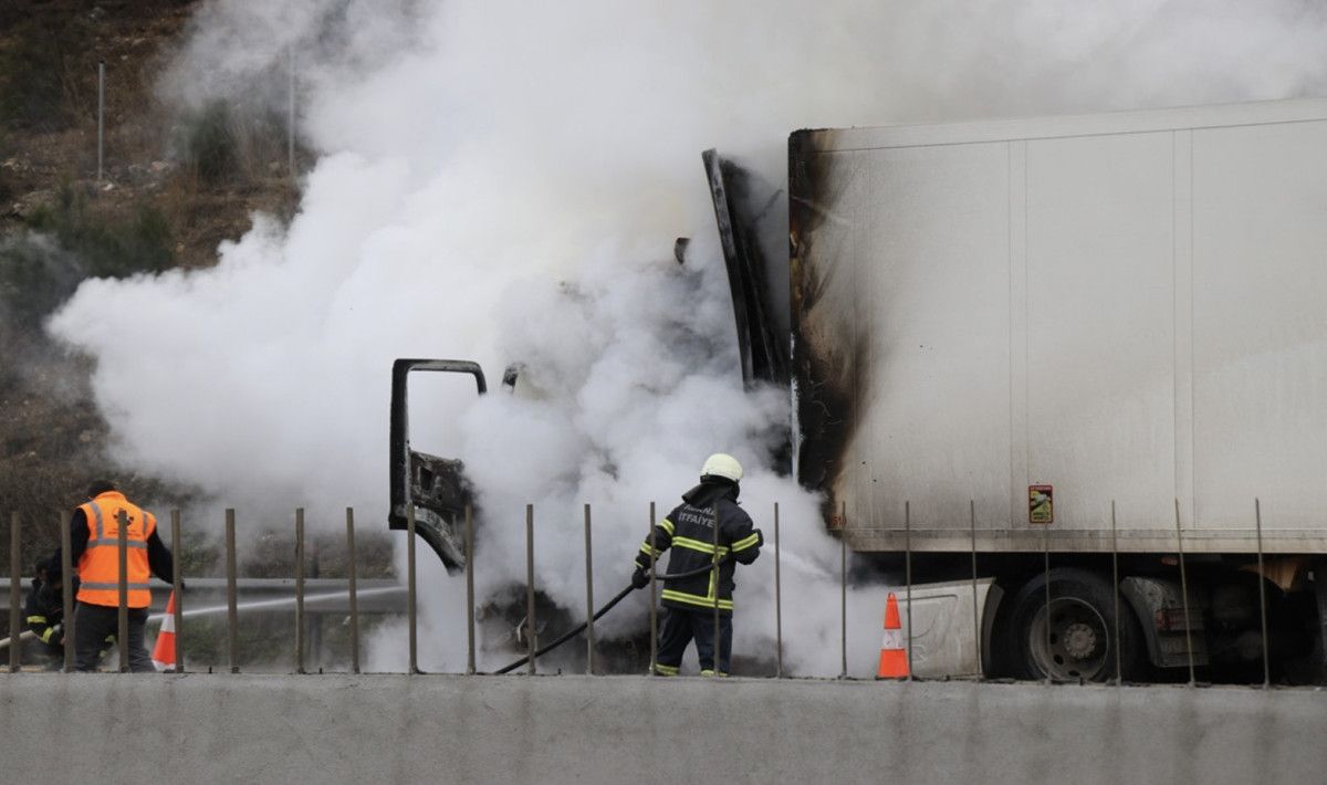 Yılmaz, çıkan dumanları aracın aynasından fark ederek tırı emniyet şeridine çekti.