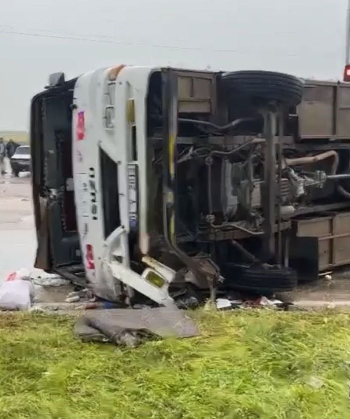 Adana’da İmamoğlu ilçesinde Adana-Aladağ yolu kavşağında tarım çalışanlarını taşıyan 01 Y 2612 plakalı minibüs, şoförünün yağışlı havada direksiyon hakimiyetini kaybetmesi sonucu devrildi.
