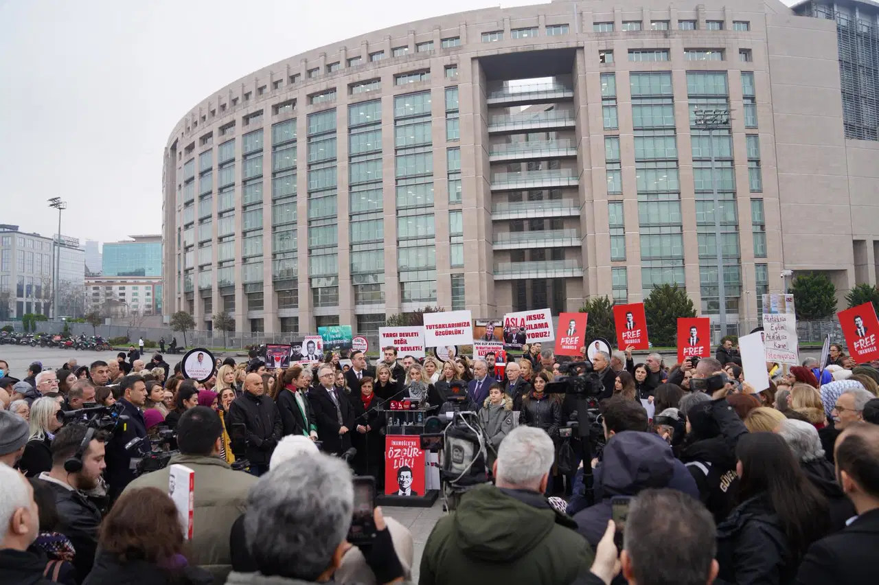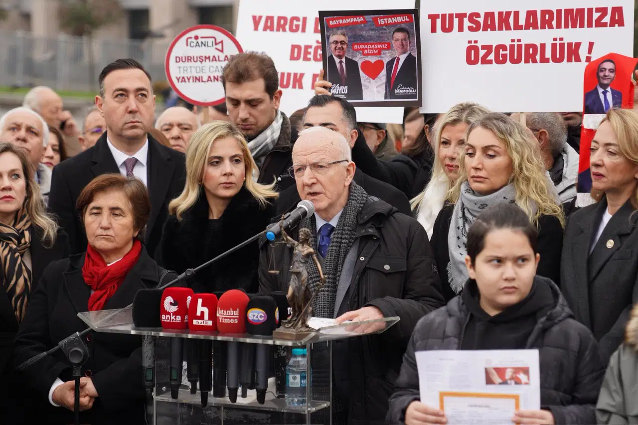 Açıklamada, İmamoğlu’nun tutuklu avukatı Mehmet Pehlivan’ın Çorlu’dan gönderdiği mektup da okundu. Pehlivan, tutukluluğun yalnızca bireyin değil, ailelerin ve çocukların hayatını da yarım bıraktığını vurgulayarak, savunma görevini yaptığı için cezaevinde bulunduğunu ifade etti; gizli tanık ve itirafçı beyanlarının somut delillerin önüne geçirilmesine tepki gösterdi.