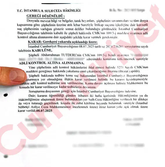 KARALAR’A TUTUKLAMA, TUTDERE’YE ADLİ KONTROL TALEBİ