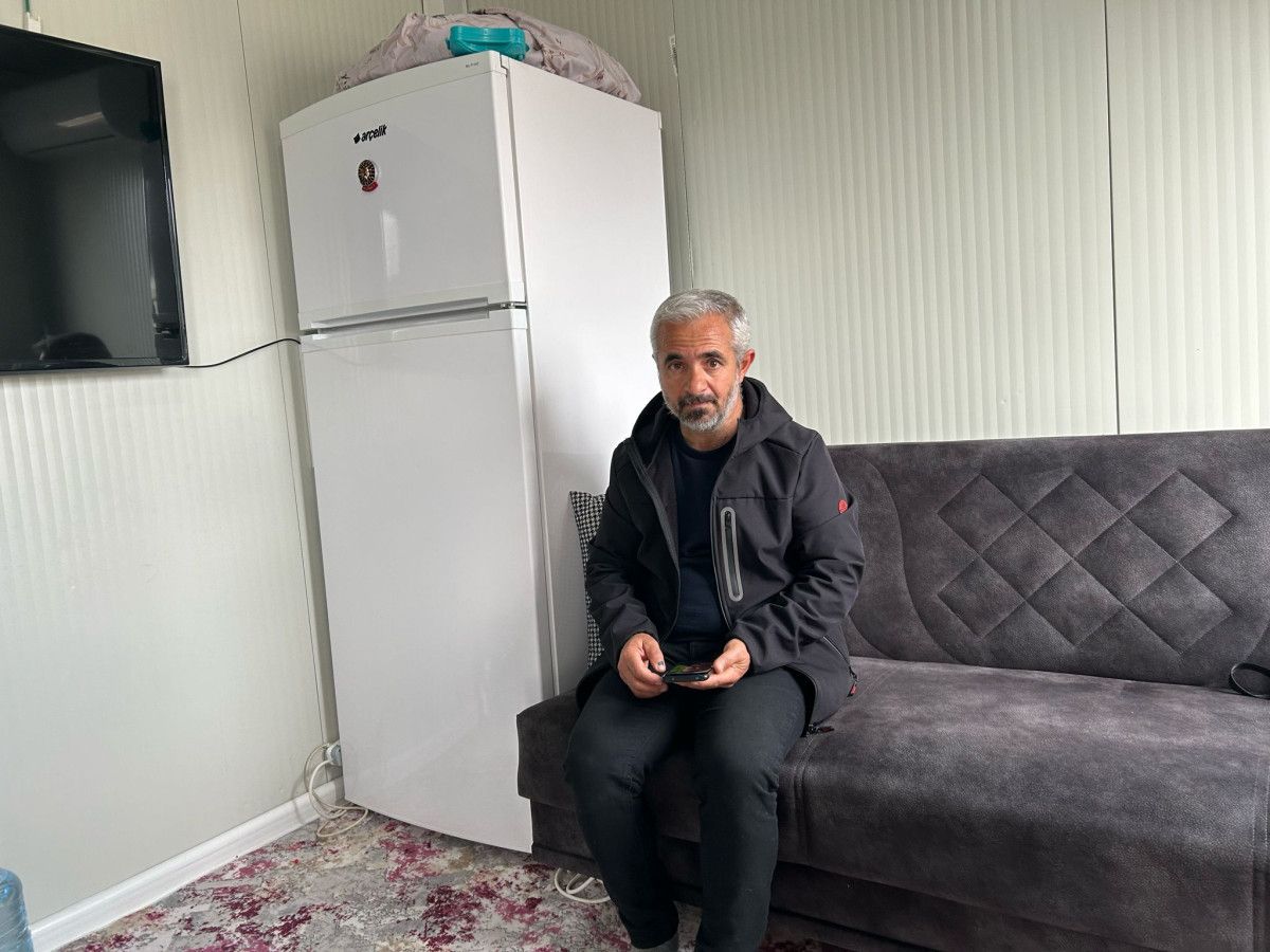 Evi de yıkılan Ruşen, şimdi 2 kızı ile konteyner kentte yaşam mücadelesi veriyor.