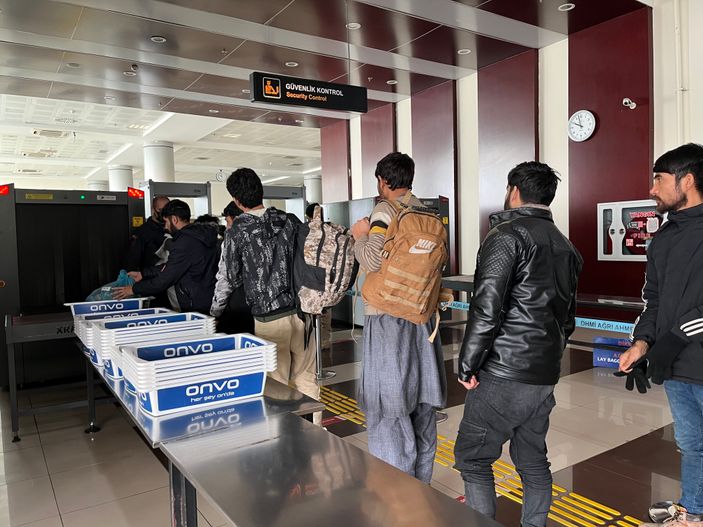 İl Göç İdaresi’nde bekletilen 136 göçmen, bugün jandarma eşliğinde Ağrı Ahmed-i Hani Havalimanı’na getirildi.
