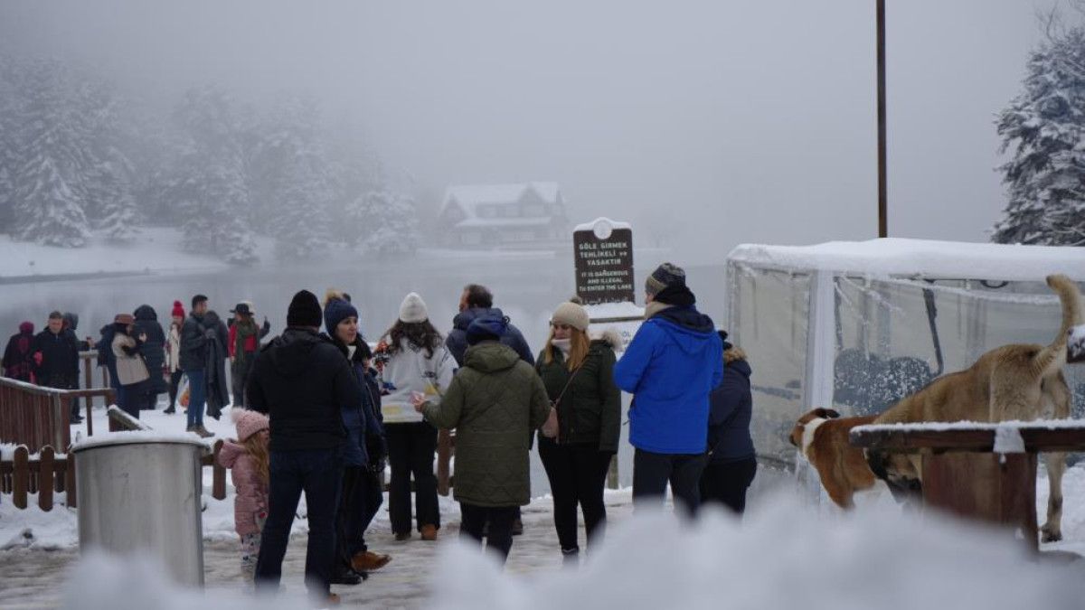 Zonguldak’ın Çaycuma ilçesinden Gölcük Tabiat Parkı’na ziyarete gelen Şakir Calap, “Gölcük güzel, daha önce de gelmiştik. Bir de karlı halini görmek istedik. Çok beğendik” dedi.