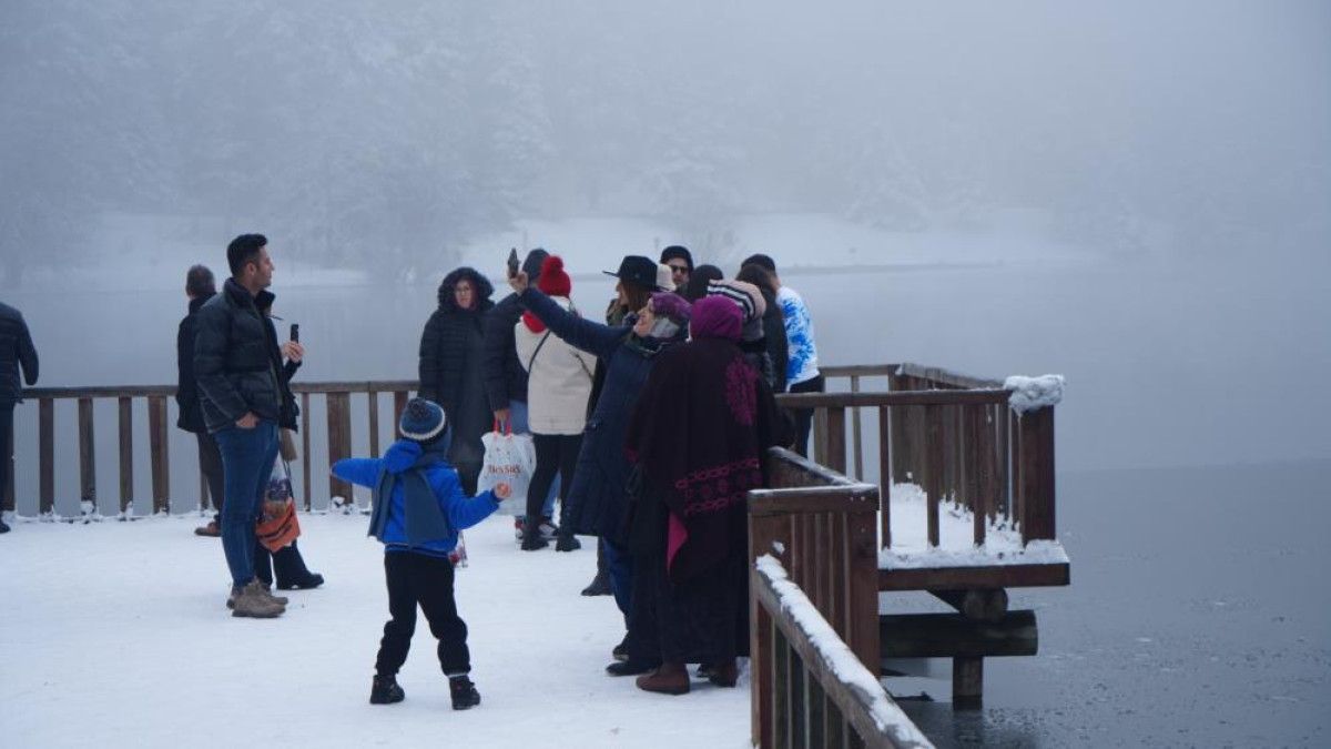 Bazı vatandaşlar ise piknik alanlarında mangal yaparak hafta sonunu değerlendirdi. Kış güzelliğinin yaşandığı Gölcük, havadan da görüntülendi.