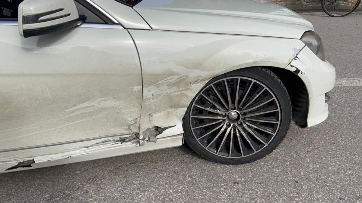 anı anbean güvenlik kamerasına yansırken araçtan inen sürücü, otomobilini kontrol ettikten sonra direksiyon başına geçip kaçmaya devam etti.