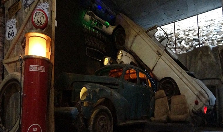 Georgia eyaleti Atlanta kentinde gördüğü araç mezarlığından esinlenen Nail, 4 katlı evinin zemin katını otomobil mezarlığına dönüştürdü.