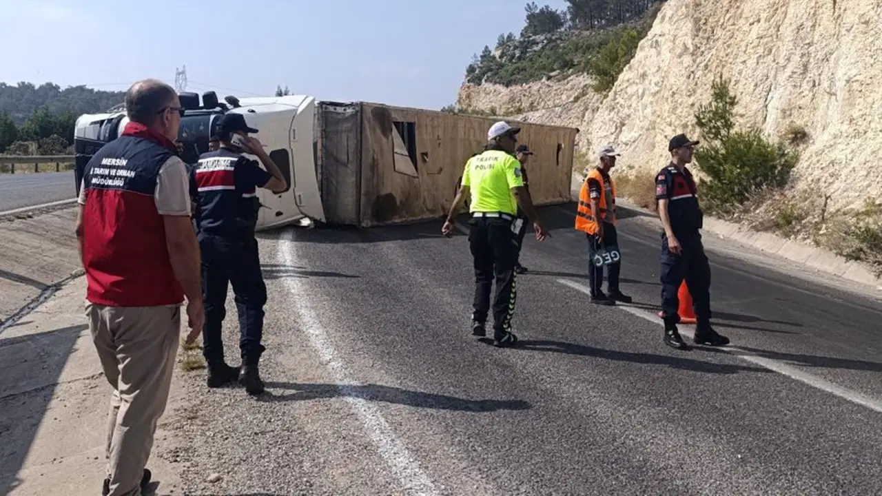 Kaza, Silifke-Mut D-715 karayolu Çamdüzü mevkiinde meydana geldi. Alınan bilgiye göre, Mehmet Salih Ulukale idaresindeki 07 BBY 407 plakalı tır, sürücüsünün direksiyon hakimiyetini kaybetmesi sonucu devrildi. Yan yatan araçta sürücü yaralandı, Taşucu Limanı’ndan yüklenen angus cinsi 60 büyükbaş hayvandan bazıları ise kaçtı, biri öldü, 4’ü de yaralandı.