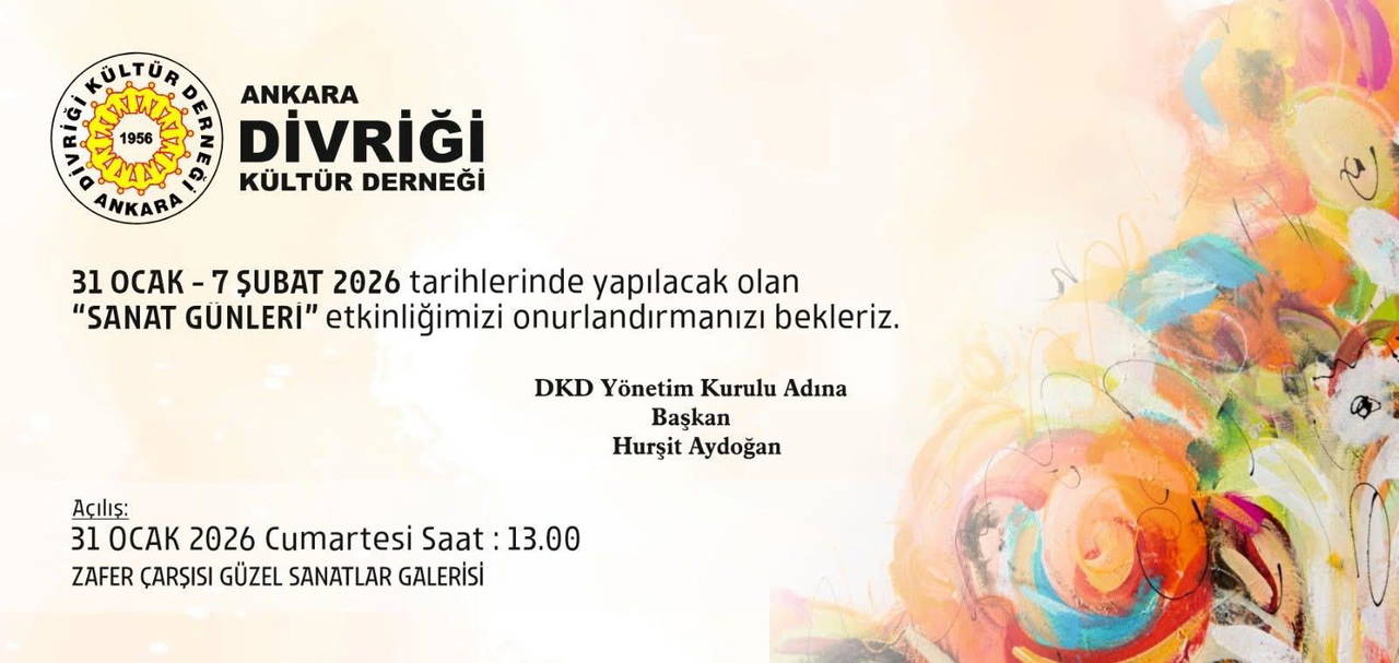 Ankara Divriği Kültür Derneği 31 Ocak-7 Şubat tarihleri arasında Sanat Günleri etkinliği düzenleyecek.