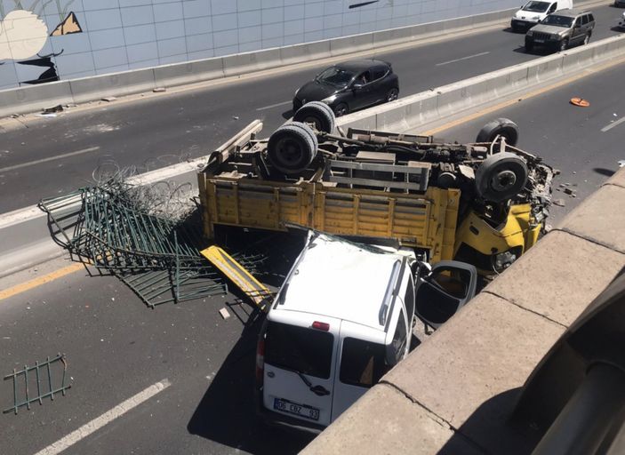 Kamyon, alt geçitte seyir halindeki 06 CBZ 93 plakalı hafif ticari aracın üzerine devrildi.