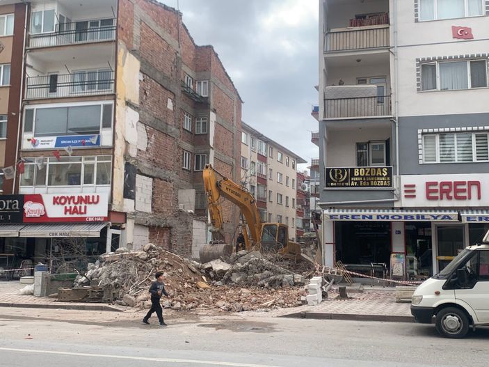 Ankara’nın Sincan ilçesinde yıkım yapılan binada çalışan iş makinesi, bir başka binadaki 1 dükkan ve 5 eve zarar verdi.