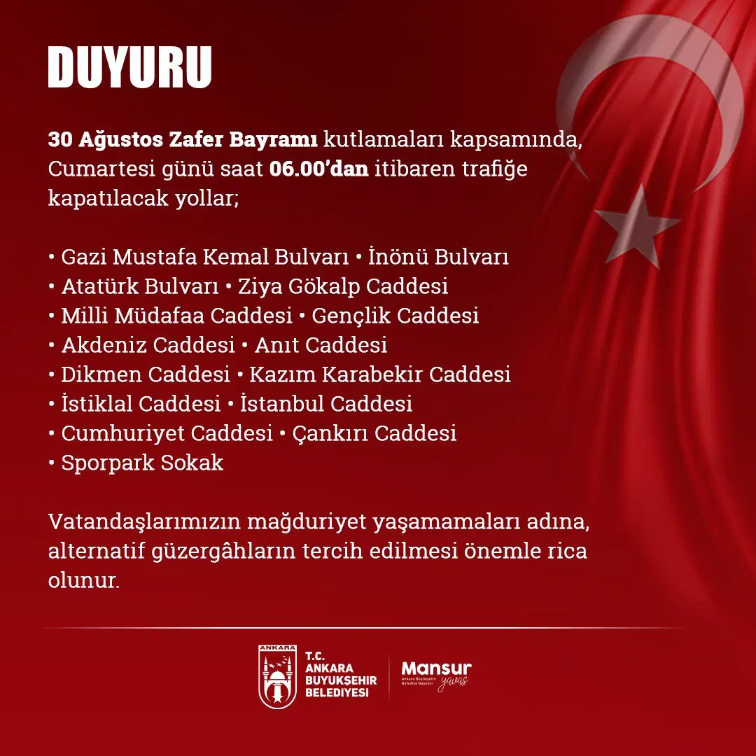 Açıklamada, yurttaşların mağduriyet yaşamaması için alternatif güzergahların tercih edilmesi istendi.