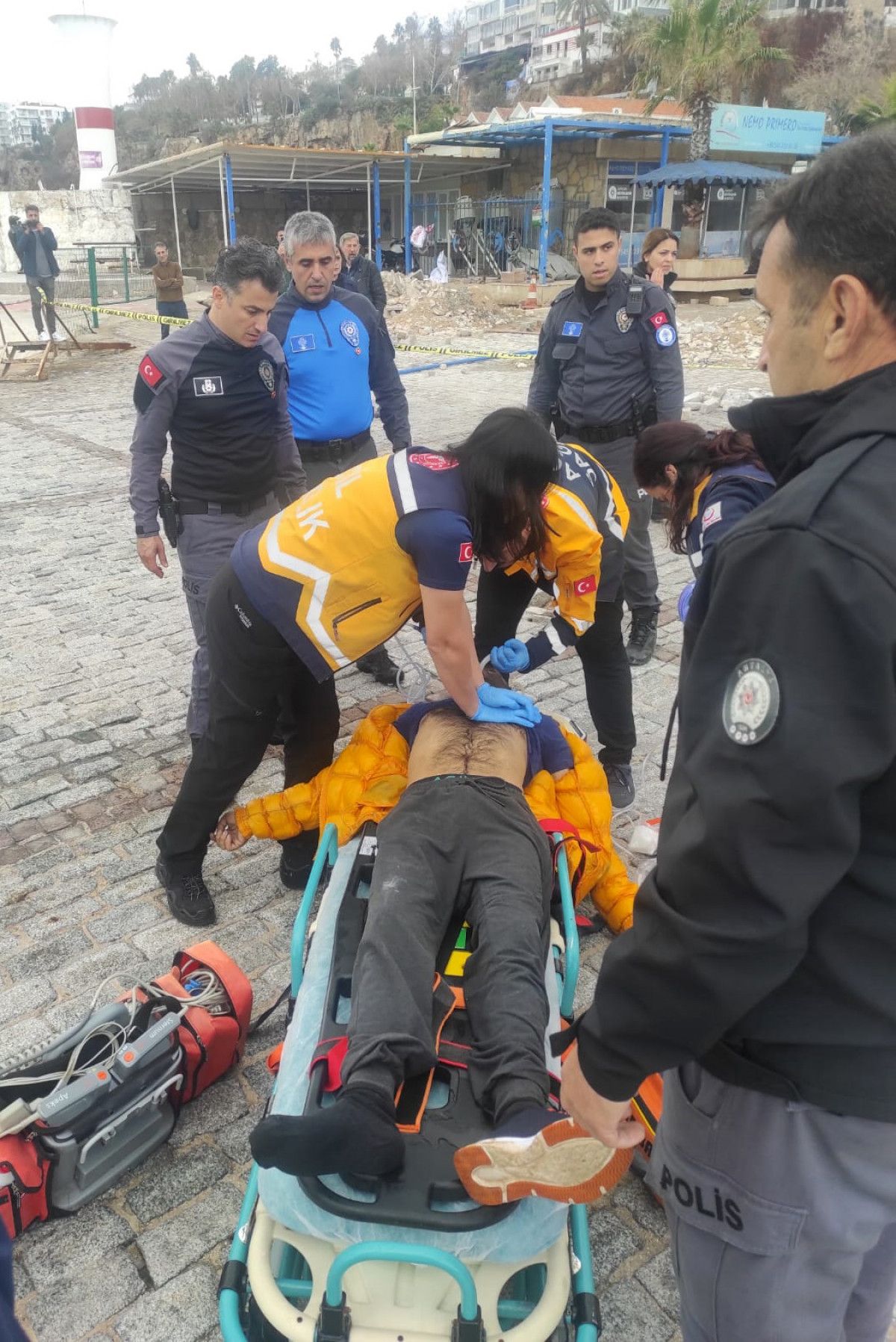Deniz polisi suyun üzerinde hareketsiz haldeki Demir’i bota alarak Kaleiçi Yat Limanı’ndaki Deniz Polisi Şube Müdürlüğü’ne götürdü.