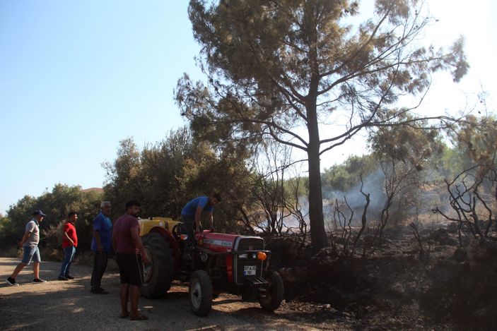 Bazı vatandaşlar da traktörlerinin arkasına bağladıkları ilaç tankeri ve sondaj hortumu ile yangına müdahalede bulundu.