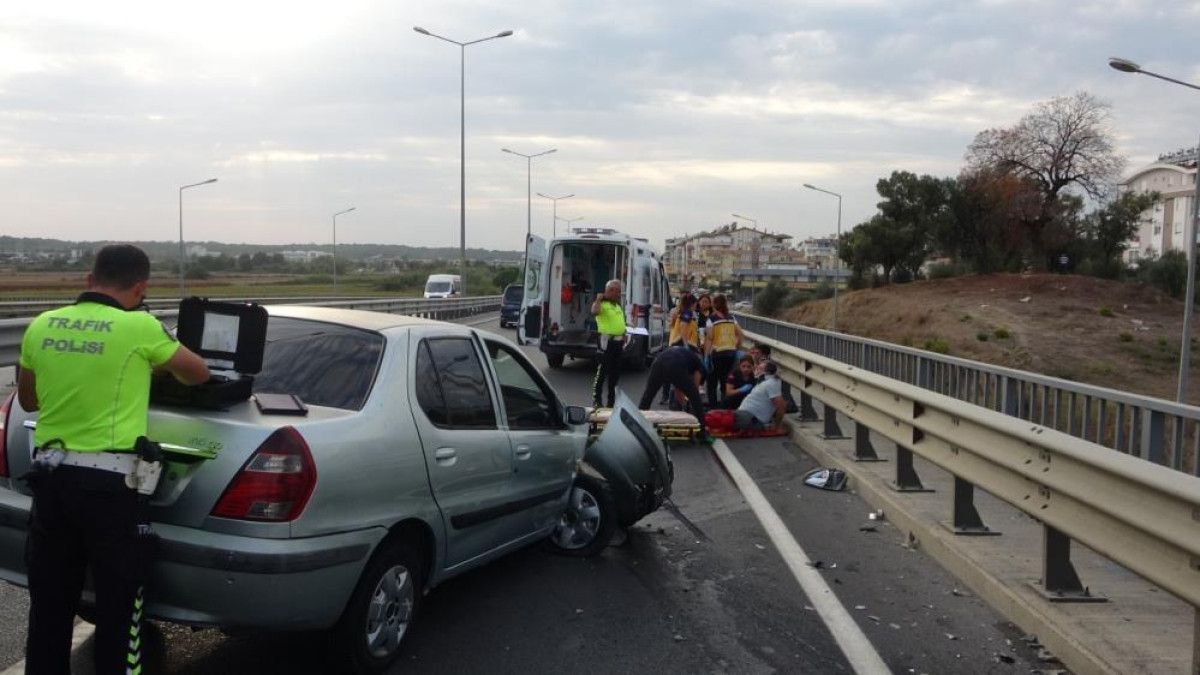 Alanya’dan Antalya istikametine seyahat eden otomobil, Manavgat Çevreyolu Sanayi köprülü kavşağında sürücüsünün direksiyon hakimiyetini kaybetmesiyle bariyerlere çarptı.
